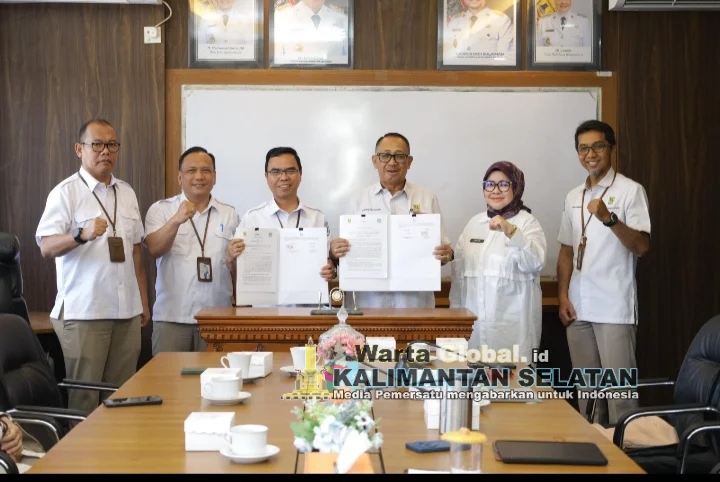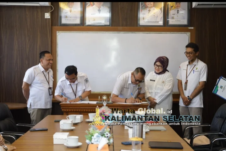 Banjarmasin, Warta Global Kalsel - PT Air Minum Bandarmasih melakukan tanda tangani MoU atau Perjanjian Kerja Sama dengan Perumda PALD, di Ruang Rapat Direktur Utama PT AM Bandarmasih, Rabu (15/10/2025).