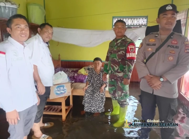 BARABAI, Kalsel, Warta Global Kalsel – Babinsa Koramil 04/Labuan Amas Selatan (LAS) Kopda Dedy Sulaiman melaksanakan pendampingan pendistribusian bantuan bingkisan bagi warga terdampak bencana alam banjir di wilayah Kecamatan Labuan Amas Selatan, Kabupaten Hulu Sungai Tengah, Rabu (7/1/2025).