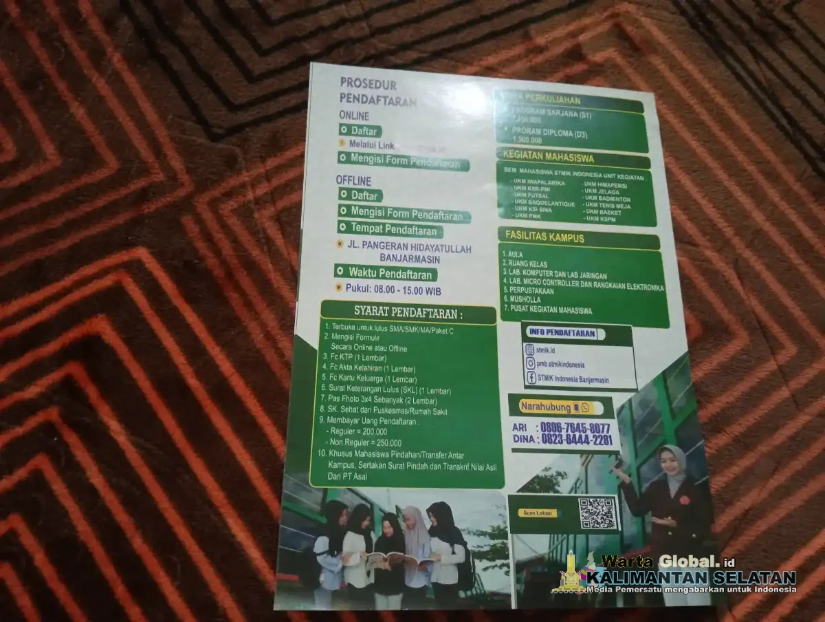 Untuk Penerimaan Mahasiswa Baru (PMB), Pihak Kampus STMIK Indonesia Banjarmasin kata Ketua STMIK Seradi Angkasa, SE, M.Kom, sudah melakukan sosialisasi hingga Puruk Cahu (Kalteng), Palangkaraya dan kemaren juga ke Pelaihari melakukan sosialisasi keberadaan Kampus, "Alhamdulillah tanggapan Para Siswa, respon baik " kata Seradi, Selasa (14/4/2026).